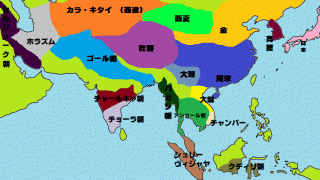 また、モンゴルの記事で「青色」のモンゴル帝国にしていますが、